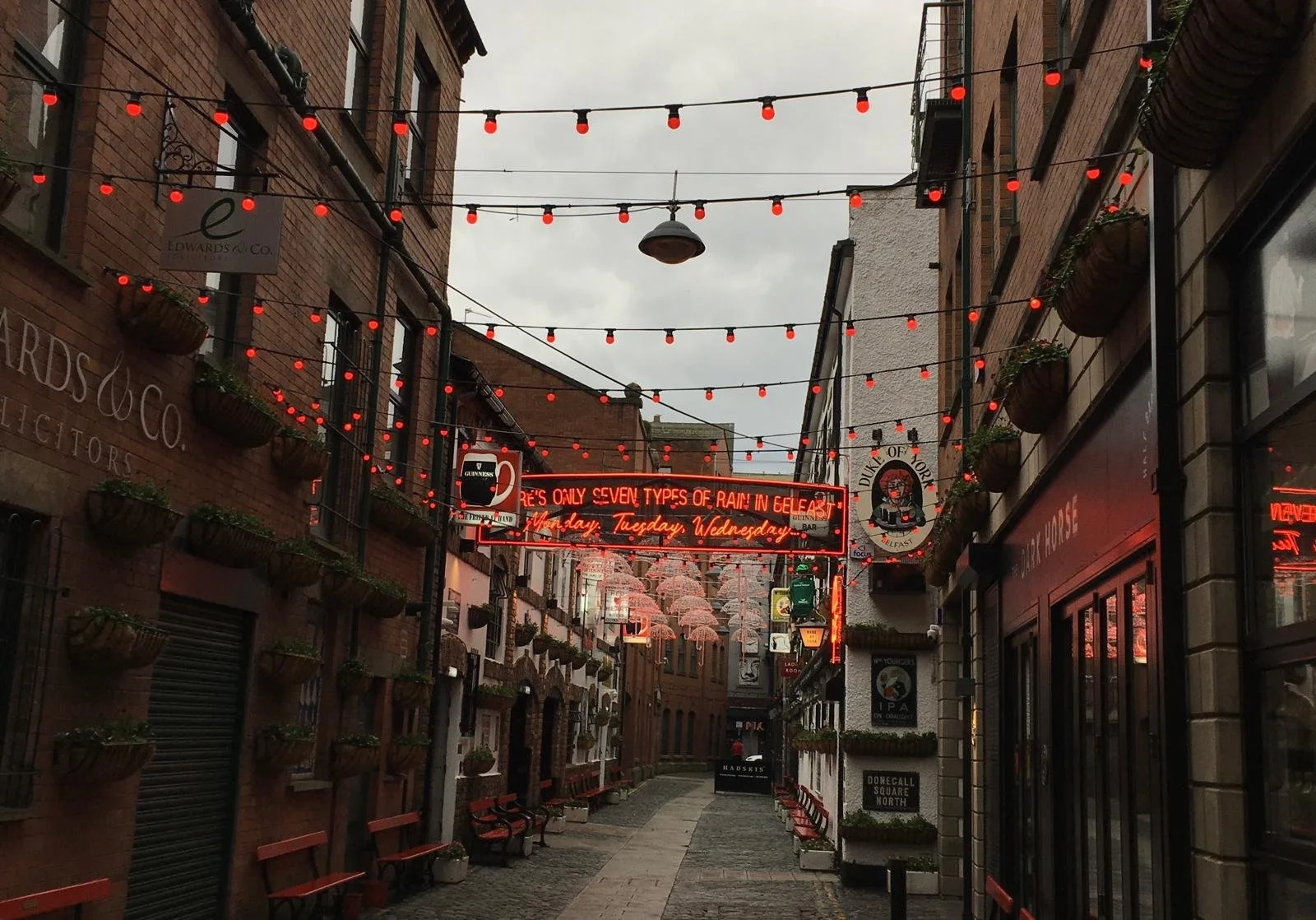 Pour votre soirée, je vous recommande de rester dans le Cathedral Quarter, vous y trouverez plusieurs pubs et bars où vous pourrez profiter. Vous pouvez d'abord aller manger à The John Hewitt, ils font un des meilleurs fish & chips de la ville et vous pourrez profiter de la musique live après votre repas. Vous pouvez également passer la soirée dans d'autres pubs comme The Duke of York, The Dirty Onion, The Dark Horse, etc.